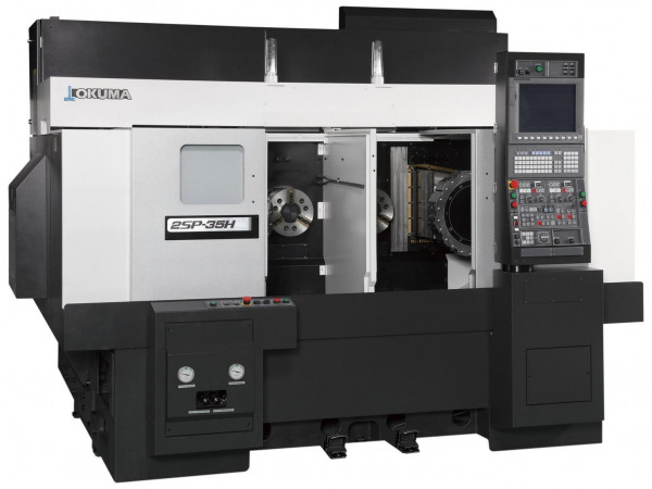 Signifikante Taktzeitreduzierung bei kleinen bis mittleren Werkstücken, ideal geeignet für mittlere bis große Losgrößen in der Automobilindustrie: Die innovativen Front-Doppelspindler machen die Okuma 2SP-H Serie zur automationsfreundlichsten Drehmaschine. Vor- und Rückseitenbearbeitung können zeitsparend an einer Maschine vorgenommen werden. Die den Spindelköpfen zugeordneten Schlitteneinheiten ermöglichen zudem die Einbindung des Okuma Gantry Loader (OGL) in die Produktionslinie für eine automatische Be- und Entladung der Werkstücke.